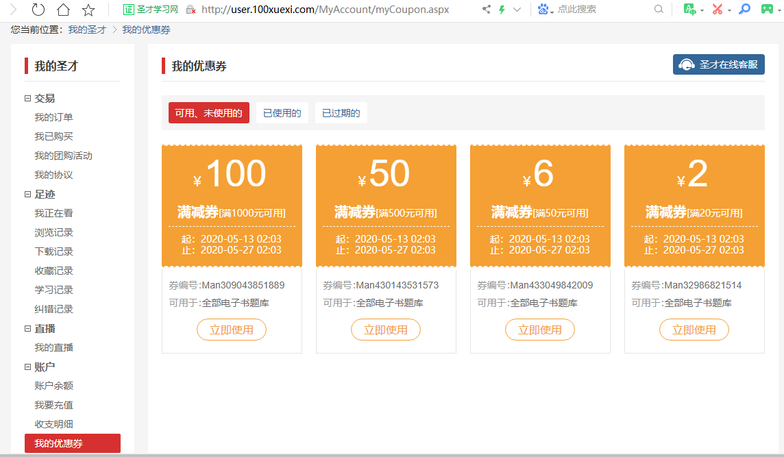 您好,关于我公司网站user.100xuexi.com,因被微信平台判定为含有欺诈类红包的处罚处理,我公司提出严重抗议!根据《微信外部链接内容管理规范》,6. 欺诈类内容6.1 虚假红包、活动,通过虚假的红包、活动等形式...... 属于违规行为,但我公司网站的优惠券,是完全真实的(活动公告:新人注册,送168元超值大礼包http://www.100xuexi.com/view/board/20200313/7862.html ),新注册用户均可获得,均可使用,购买相应产品时,即可享受相应优惠!我公司所发放的优惠券,完全是我公司网站合理、合法、合规的正常的运营行为,并不违反微信平台的上述规定,请微信平台立即解除该网址的封禁!另外,再次请微信平台及微信团队公平公正的处理!