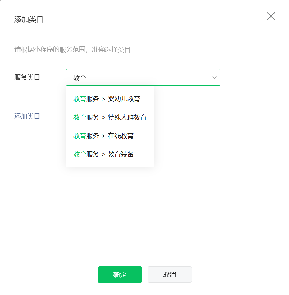 我做了一个课表小程序,是企业主体。我希望每天都给用户推送第二天的课程,给用户推送成绩。需要申请“教务信息服务”类目,从而申请【长期订阅模板】。但是在微信后台搜不到这个类目。