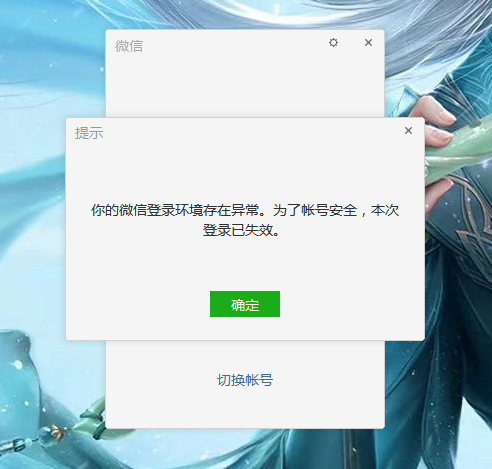 重新扫码登录即可,出现该提示一般是由于微信帐号被其它用户投诉导致(如:涉嫌频繁发送营销类广告骚扰信息等,请遵守微信使用规则,并规范个人行为,谢谢!)