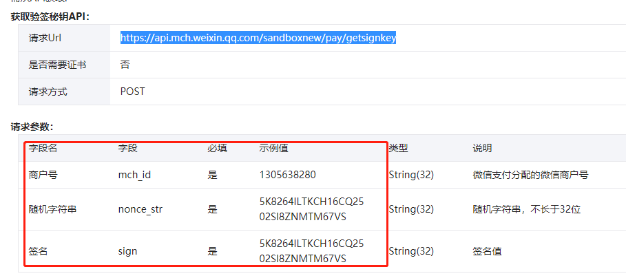 目前我在使用https://api.mch.weixin.qq.com/sandboxnew/pay/getsignkey这个沙箱环境获取沙箱的key。