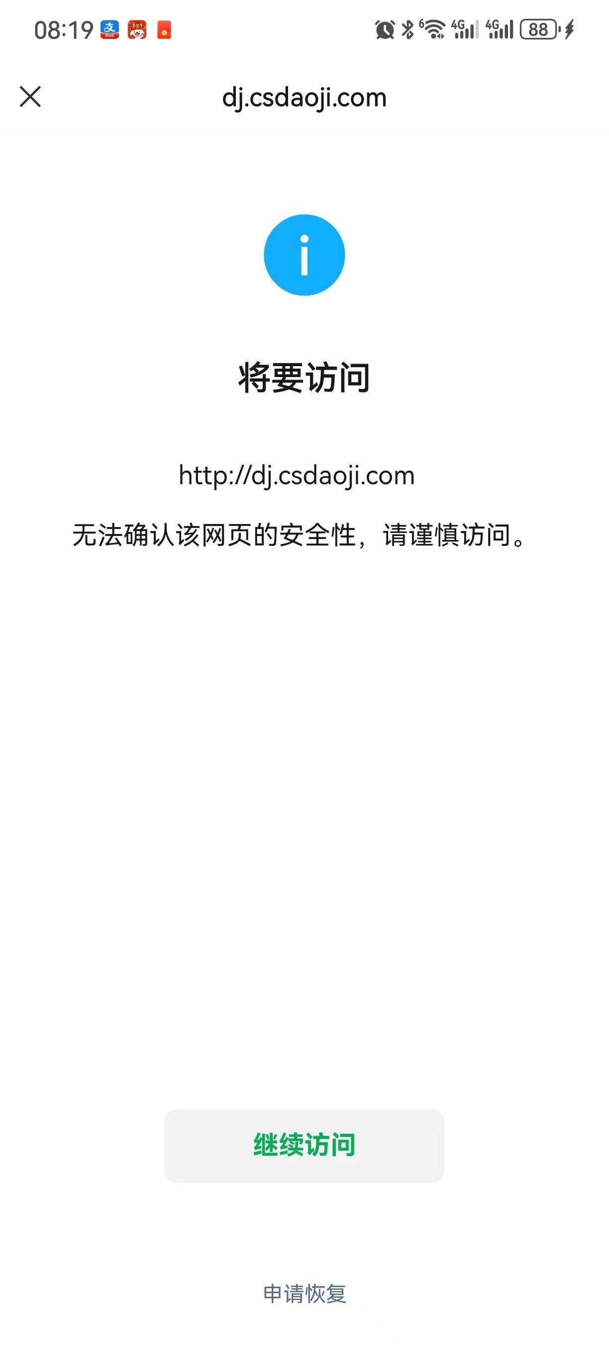 我是网站开发者,访问时间如图2025/01/20,微信访问网站出现“无法确认该网页的安全性,请谨慎访问”,经检查网页里没有不安全的内容,请核实后帮忙解除拦截,谢谢!