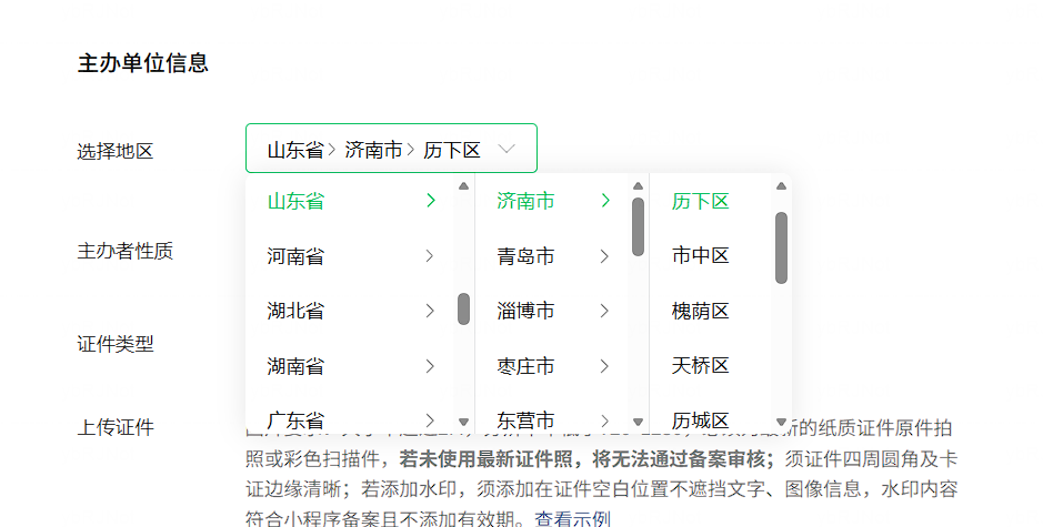 我营业执照是山东高新区注册,但是在小程序认证备案中地区选择没有高新区选项,无法认证