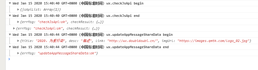 一个分享需求,调用了两个新加入的分享接口updateTimelineShareData、updateAppMessageShareData。但为什么控制台打印的消息表明已经成功了却又不见弹出好友列表进行分享?