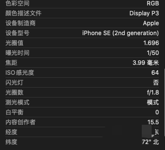 ios 版本15.5 手机上拍照以后图片格式是HEIF,并且有经纬度坐标信息。