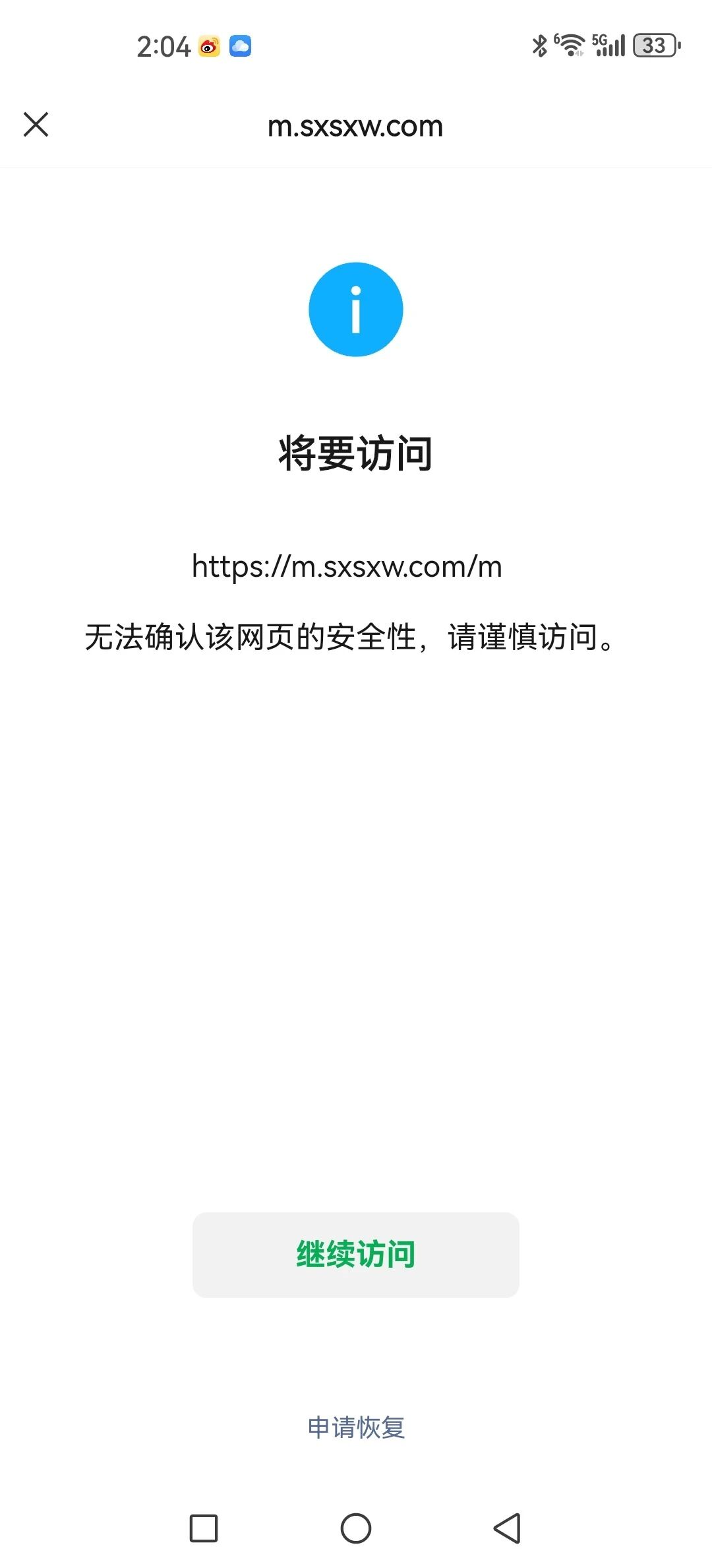 社区技术专员,您好,公司网站这几个链接(https://www.sxsxw.com/ 、https://m.sxsxw.com/m/),在微信和公众号里访问都会提示非微信官方网页,请确认是否继续访问。sxsxw.com该域名已备案,备案号为 晋ICP备2025057229号-1,请帮忙核查处理一下。