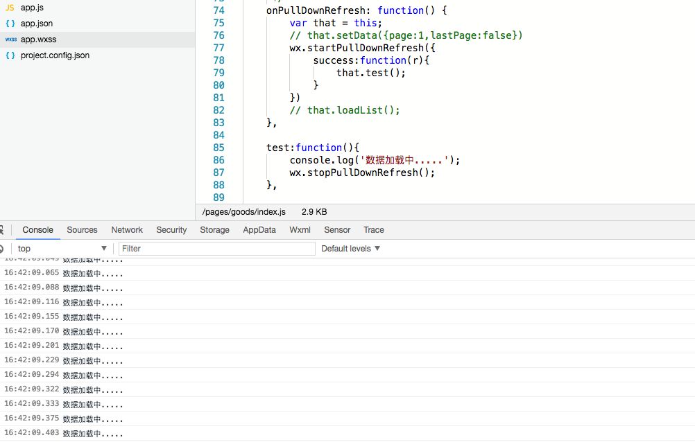 真机调试一样的效果,就是一直跑。wx.stopPullDownRefresh()无效???
