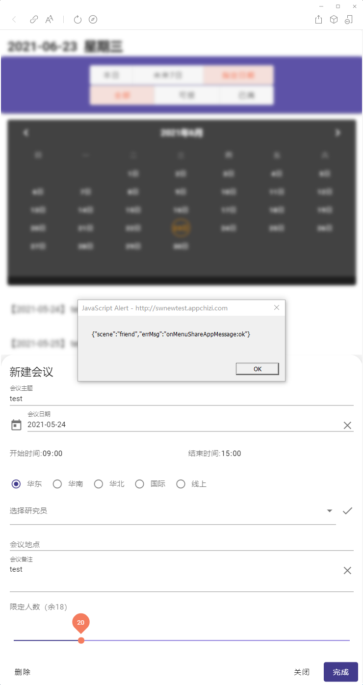 场景二,Android端微信(Meizu Pro7,微信版本8.0.3 / Huawei nova 5 Pro,微信版本8.0.6)分享,在配置、调用成功后,没有弹出选择对话框,也没有任何效果。如图: