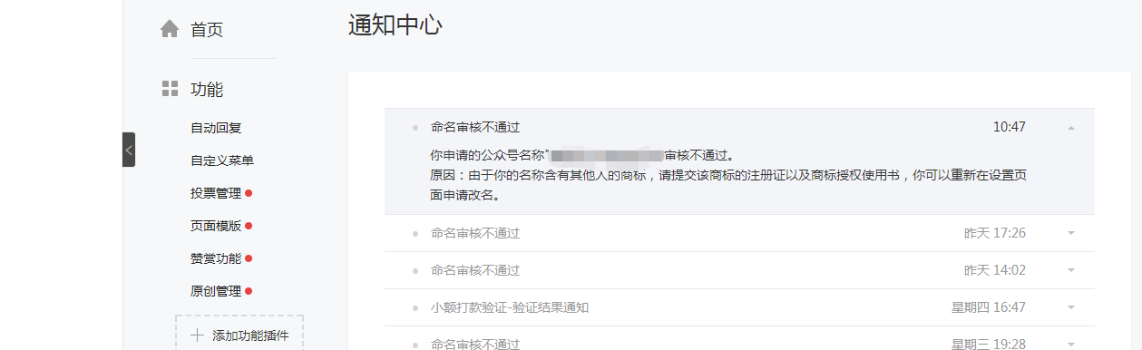 企业公众号改名涉及企业商标,改名失败,我们已经审核查了好多次没发现问题,产品授权证书、我们公司营业执照,我们公司自己的商标注册也提供了,还是命名审核不通过,请问有解决方案吗?