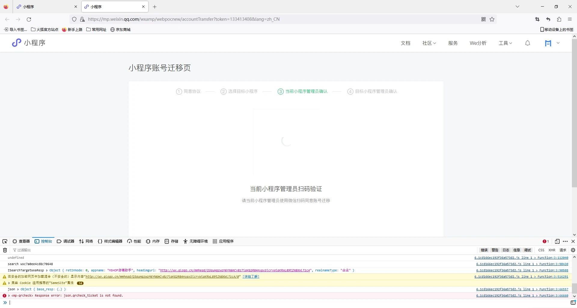 控制台报错,二维码不显示,怎么搞?浏览器无痕模式一样,赶快修复下。@你们一个管理员还要等级,联系你们太难了。