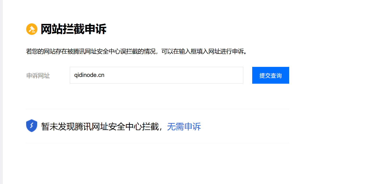 在腾讯安全-网站安全中心-网站拦截申诉 检查 暂未发现腾讯网址安全中心拦截,无需申诉