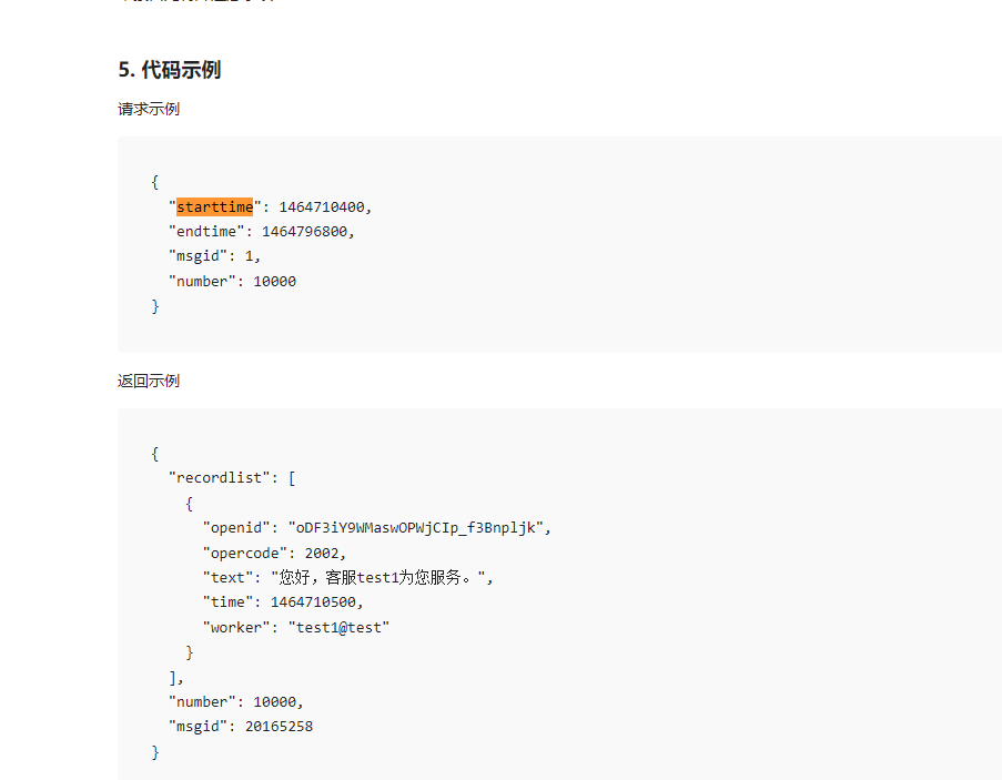 然后又按照 文档下方的请求实例 格式填写参数,依然是获取不到 消息列表