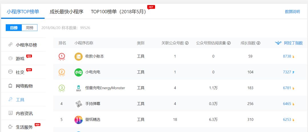 阿拉丁算是目前业内比较认可的小程序榜单,这个榜单在某些层面上反映了小程序的使用频率和热度。能上榜的小程序,肯定是火爆的,所以他们就是被蹭的对象了。