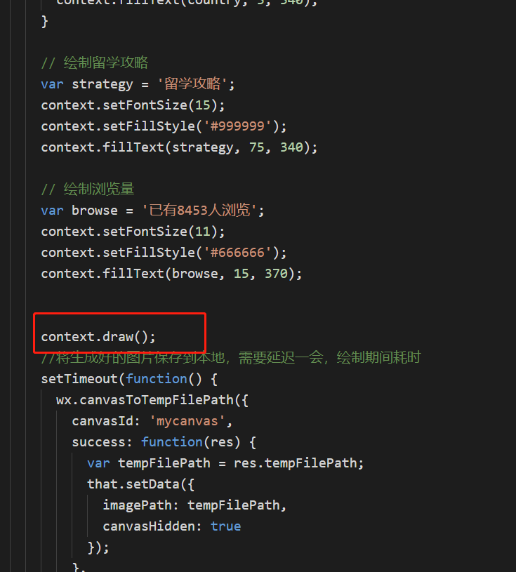 在draw()的回调函数里做wx.canvasToTempFilePath,人家官方文档写着呢