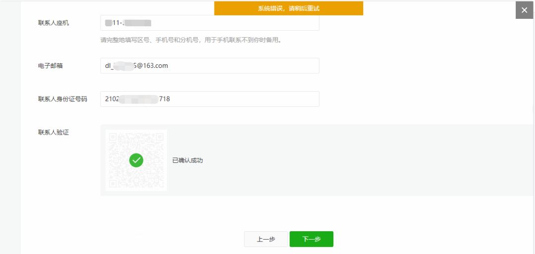 进行开发者资质认证申请时,首次资料提交审核未通过,进行资料修改重新提交时就每次都提示“系统错误,请稍后重试”,更换网络环境、ip、浏览器都进行了尝试,均无效果。注册账户dlswjwgxc@126.com,是给民生项目做申请,急急急急急