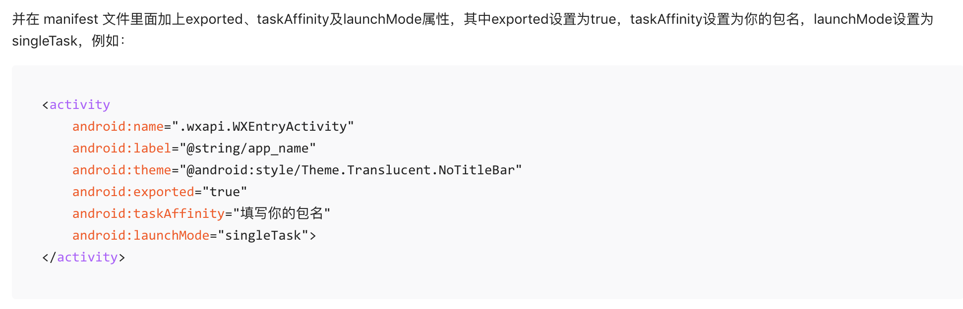 安卓的开发也看了https://developers.weixin.qq.com/doc/oplatform/Mobile_App/Access_Guide/Android.html 文档 ,说都配置了,但是还是不行,点击没反应