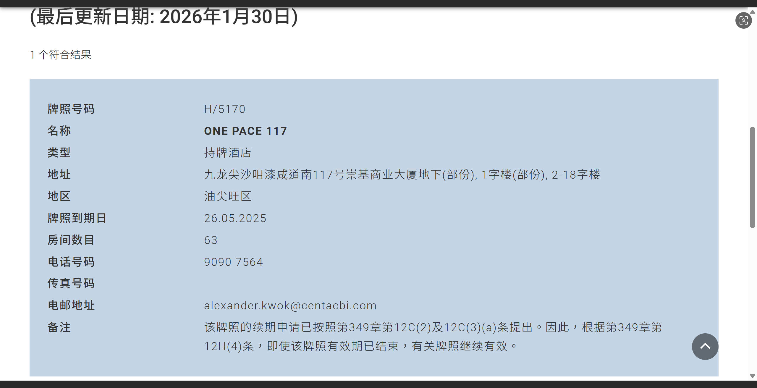 小程序的酒店牌照信息如图,虽然牌照到期了,提交了续期申请,香港的处理是认可牌照有效的,微信审核类目却只看有效时间,香港那边一直不更新牌照的时间我也没办法啊,因为类目过期和牌照问题小程序也没法更新了,实在不知道什么时候香港政府能处理去更新时间,但是他们一直认可有效的呀,有没有官方能提供一个可行的办法呢