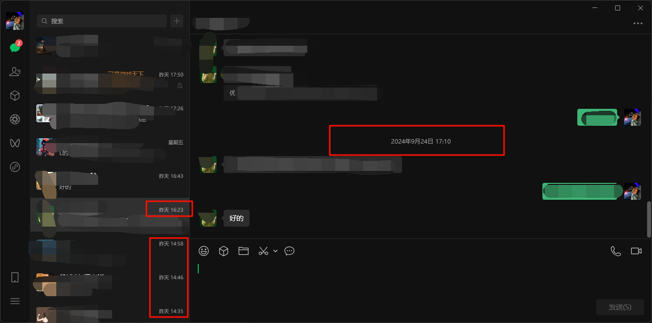 今天升级微信PC 4.0.6.3测试版崩溃两次,导致从2024年10月1日后的聊天记录均不显示,左侧能看到有近期消息,点进聊天界面无消息,聊天界面只有2024年10月1日之前的消息。求解决方法,网上和官方的文档恢复方法都是针对PC 3.0的,4.0的文件夹完全不一样了,无法按照之前的方法恢复。急求!!!!