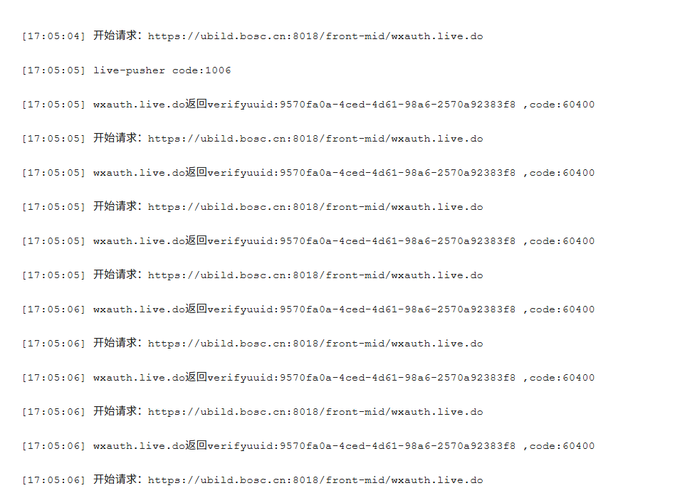 客户端版本:8.0.59 基础库版本:3.8.3 系统类型:IOS live-pusher组件 状态码为60400,反复开始建立又断开