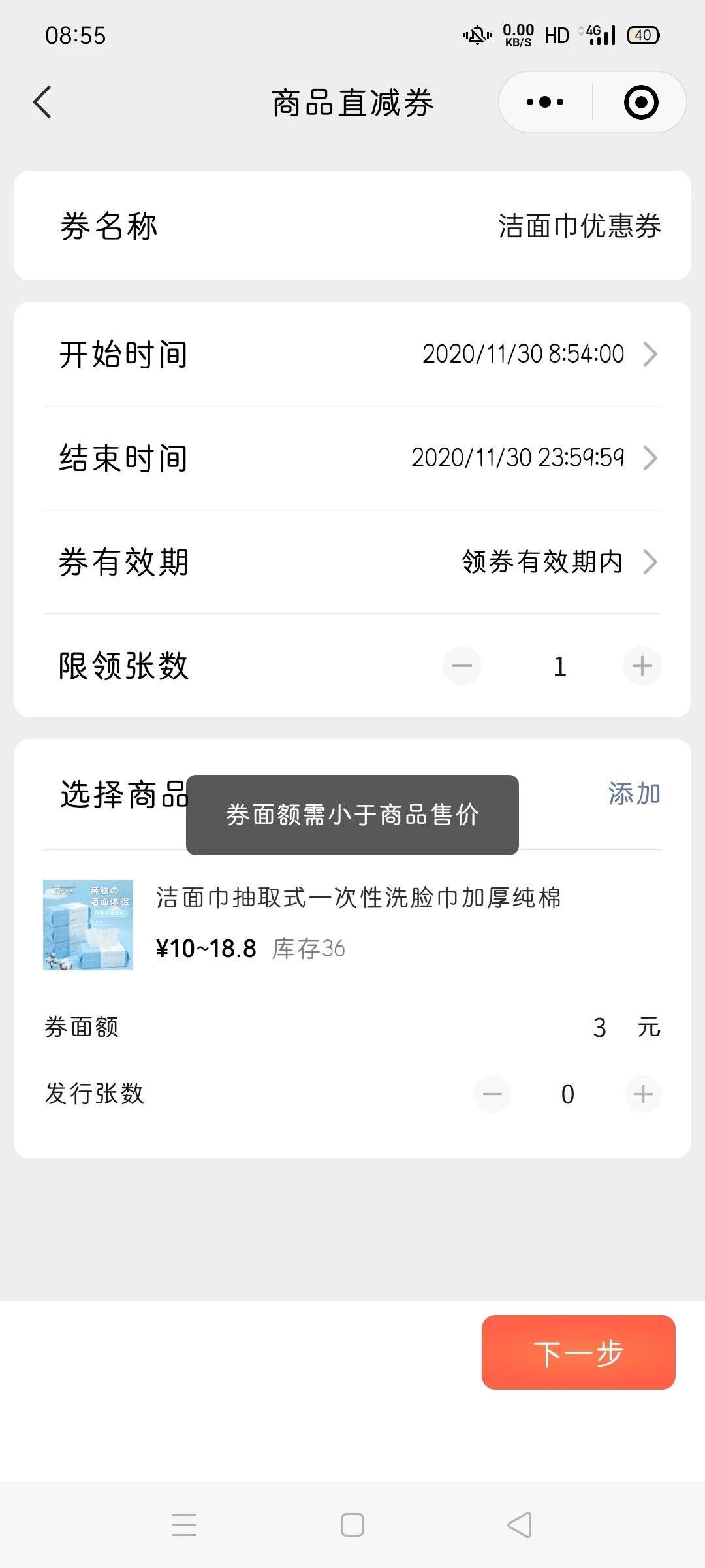 设置的优惠券明明不小于售价,却显示小于售价,添加的任何一块商品都这样,赶快修复吧。