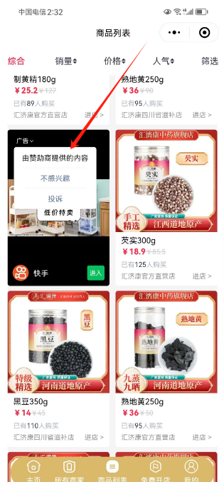 就是这种广告,不只是商品页面,打开小程序的时候都会弹出广告,提示“由赞助商提供的内容”。