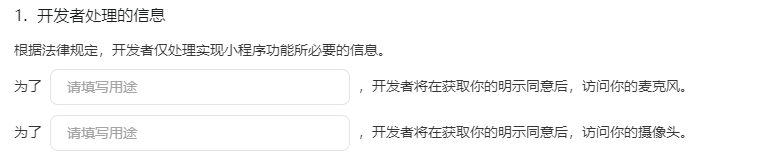 代码里从来没有调用过麦克风和摄像头接口和第三方接口 这个怎么填写