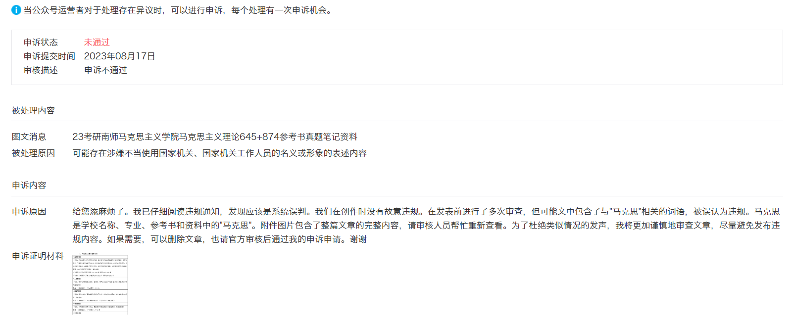 我们找了老师和几个同学一同审查了半天也没找到到底问题出在哪里,“可能存在涉嫌不当使用国家机关、国家机关工作人员的名义或形象的表述内容”的内容,文章中主要涉及到一些专业名称和书籍名称,这些名称都是学校规定的。我们希望官方能够发布一份文件,明确哪些词语是被禁止使用的,这样我们既能够遵守规定,也能够更好地配合官方工作。