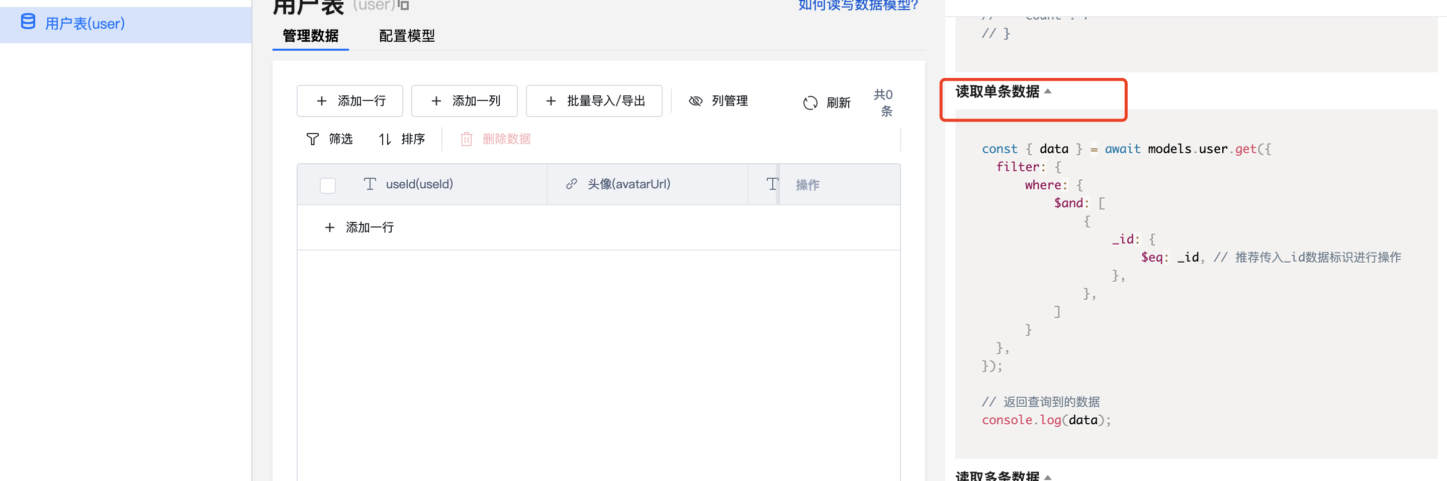 云函数中调用该数据模型: