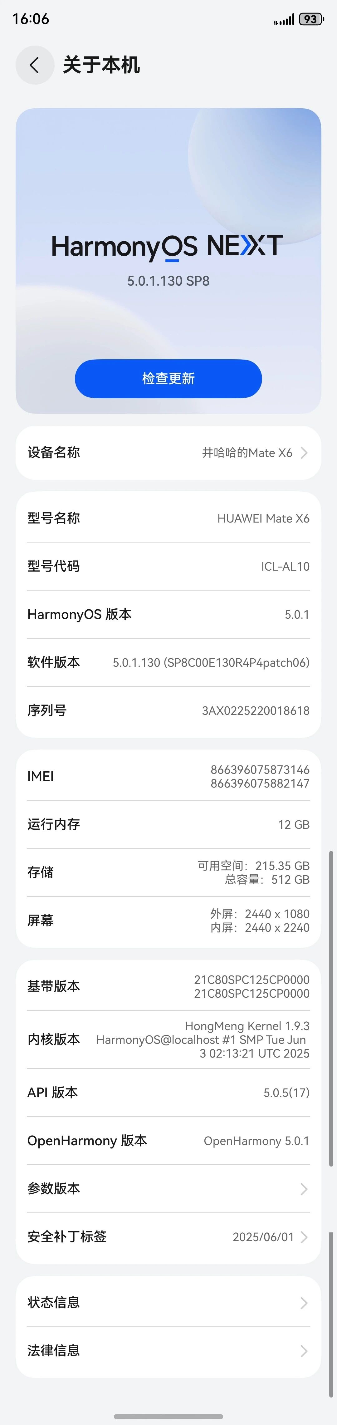 手机操作系统版本:HarmonyOS 5.0.1