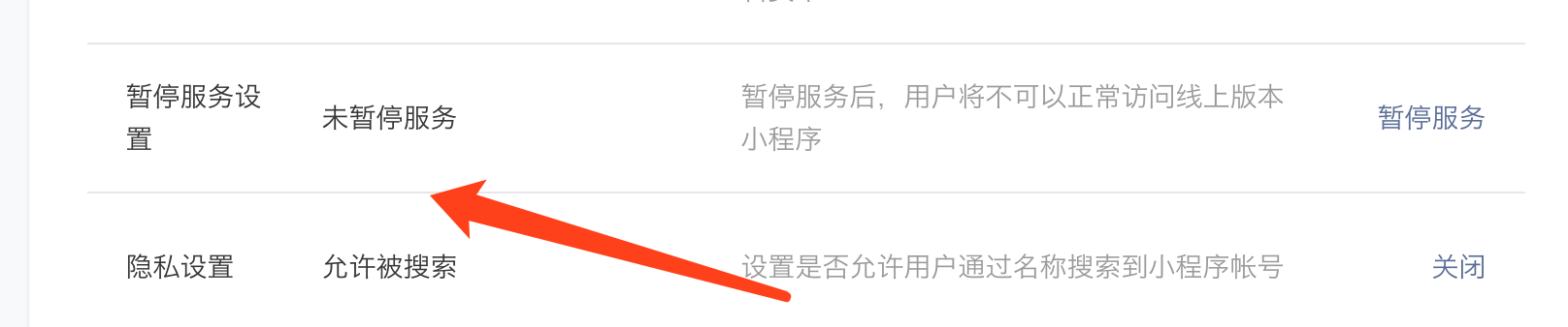 查看小程序管理后台是否暂停服务