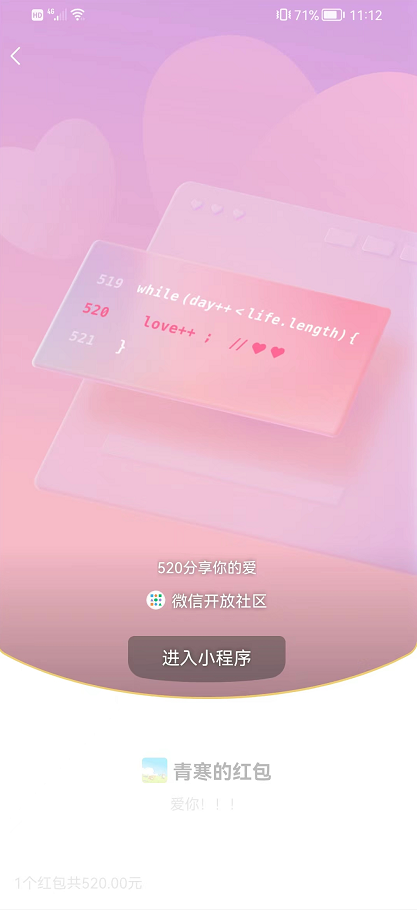 微信团队贴心准备 520 限定红包封面,融合开发特色与浓浓爱意,代码恒久远,爱意永流传!