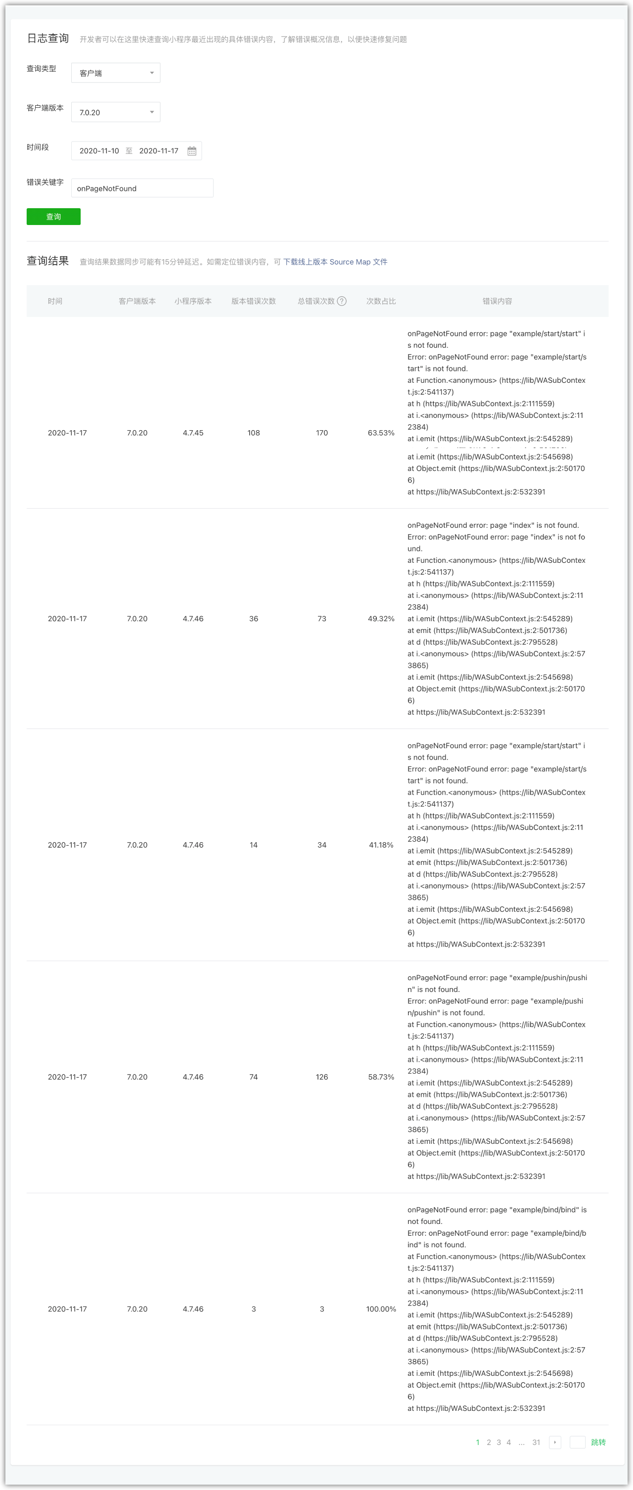 小程序后台告警有特别多onPageNotFound的错误,页面路由是绝对存在的,无法复现bug。