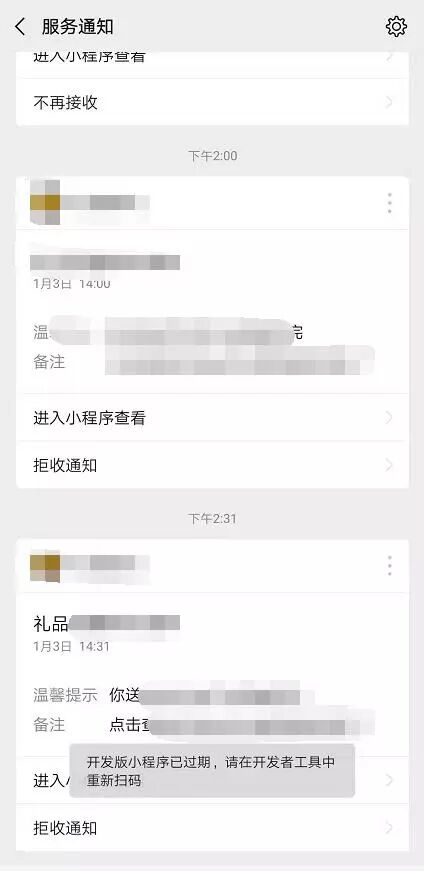 用的是线上版本点击授权的一次性订阅消息,推送消息有收到,但是点击进入不了