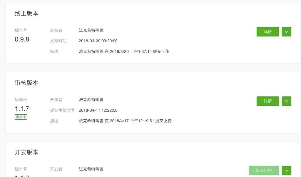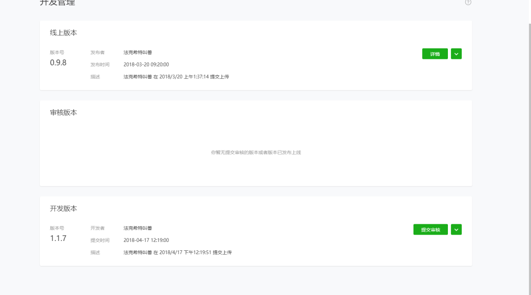 星期二提交的小程序版本更替的审核,在提交完成之后,显示的是这样的