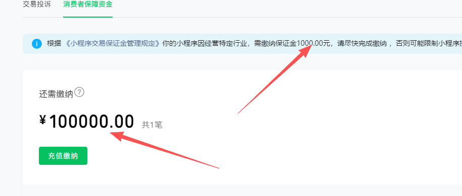 1.若不涉及跳转功能的话,无需理会10万元保证金。按保证金页面上方提示的1000元进行缴纳即可