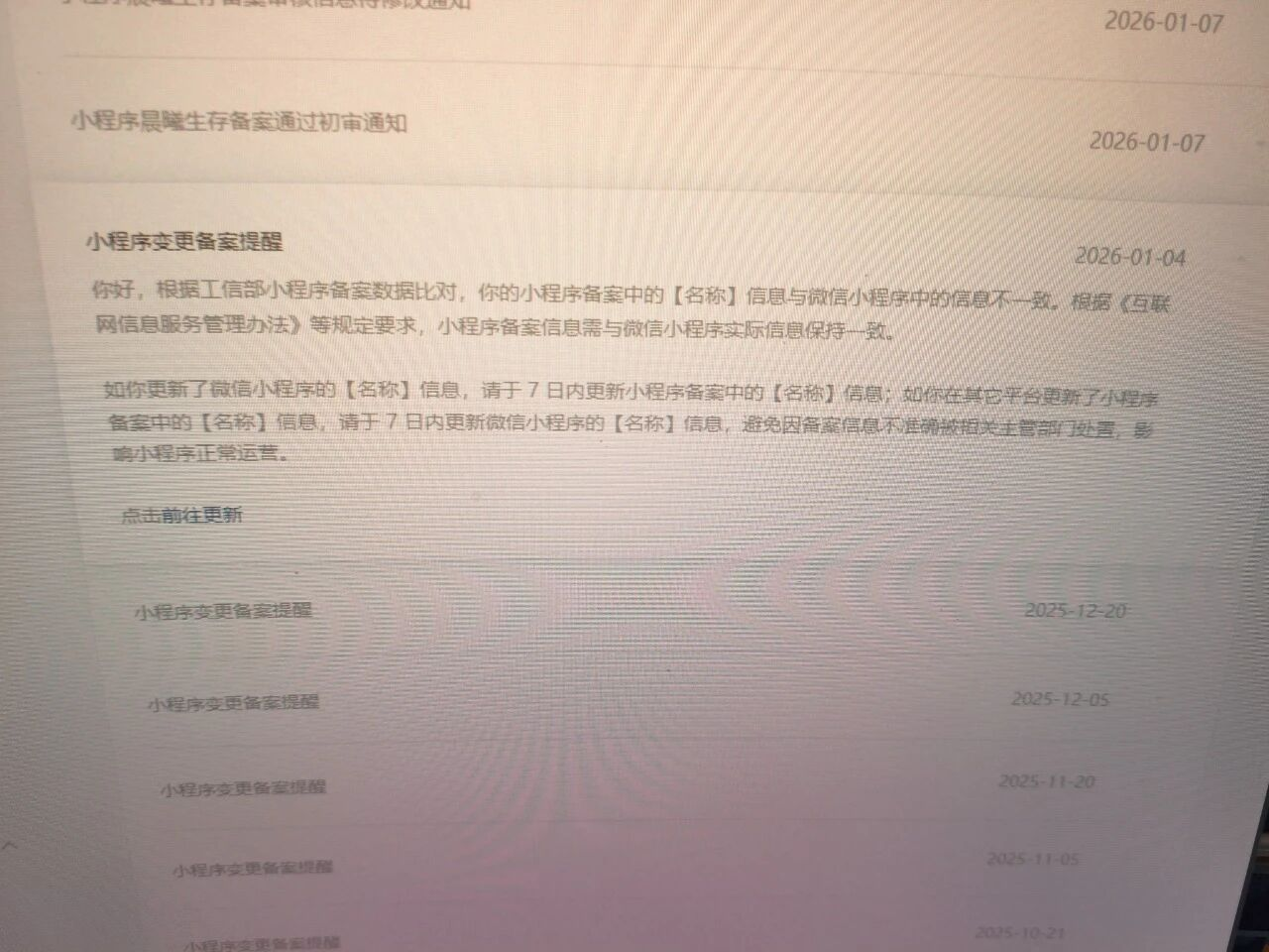 一个主体下有2个小程序备案号,2个备案号其中之一就包含这个小程序名,为什么能收到小程序名称不符的邮件,