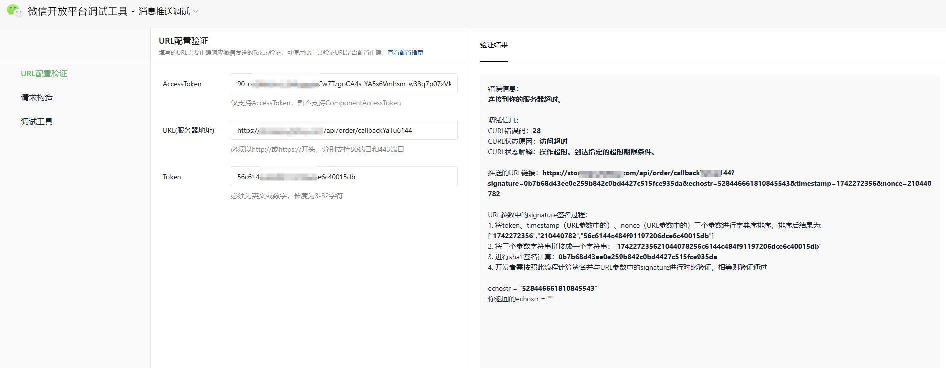现在是要开第二家店,配置消息通知接口的时候,提示超时,我用postman请求,是正常的。这个接口和第一家店的接口不是一个url。是同一台服务器。