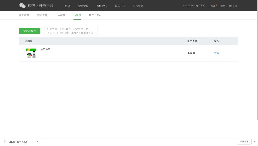 第二个是小程序绑定:
