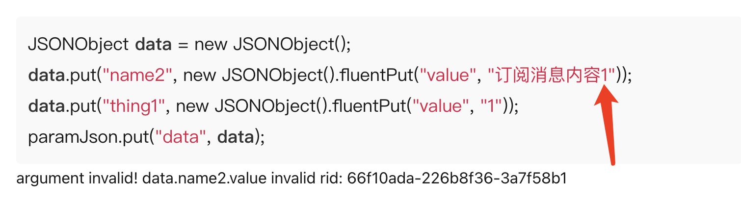 data.put("name2", new JSONObject().fluentPut("value", "订阅消息内容1"));