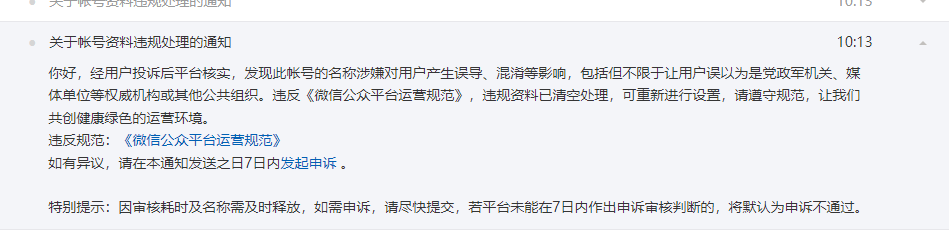 您好,一直在用的公众号资料被友商恶意投诉清空了,我们账号一直经营良好,没有任何违规行为,并且不存在误导和混淆其他账号。请管理员同学复查。