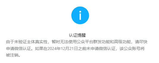 新开了一个公众号,在认证前被告知要更改主体,主体更换要等一个月,如果等一个月,那就错过了认证期,公众号会被注销。