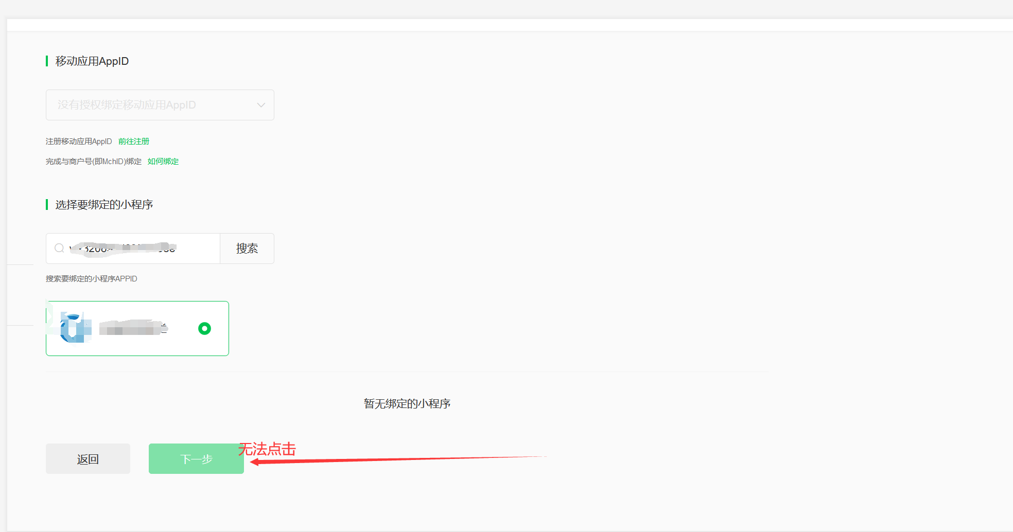通过以上步骤操作添加体验版小程序,下一步无法点击