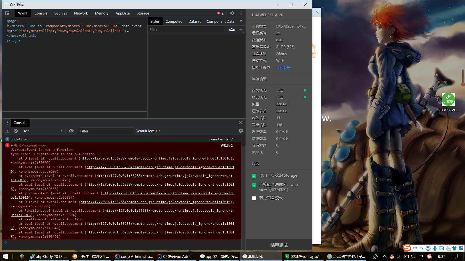 在pc端的开发工具上没问题,真机调试的问题