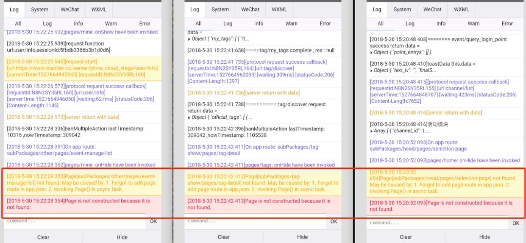 具体表现为报错,提示页面的构造函数没有调用。不是某个页面的问题,只要是在分包加载结构中的页面,一律有这个问题,我截了三张有代表性的图,并未将每一个页面都截图。