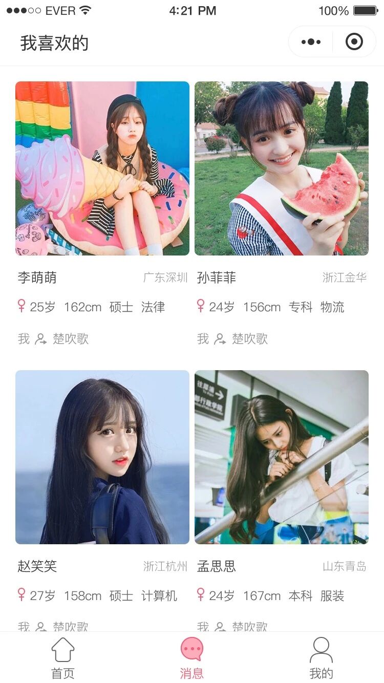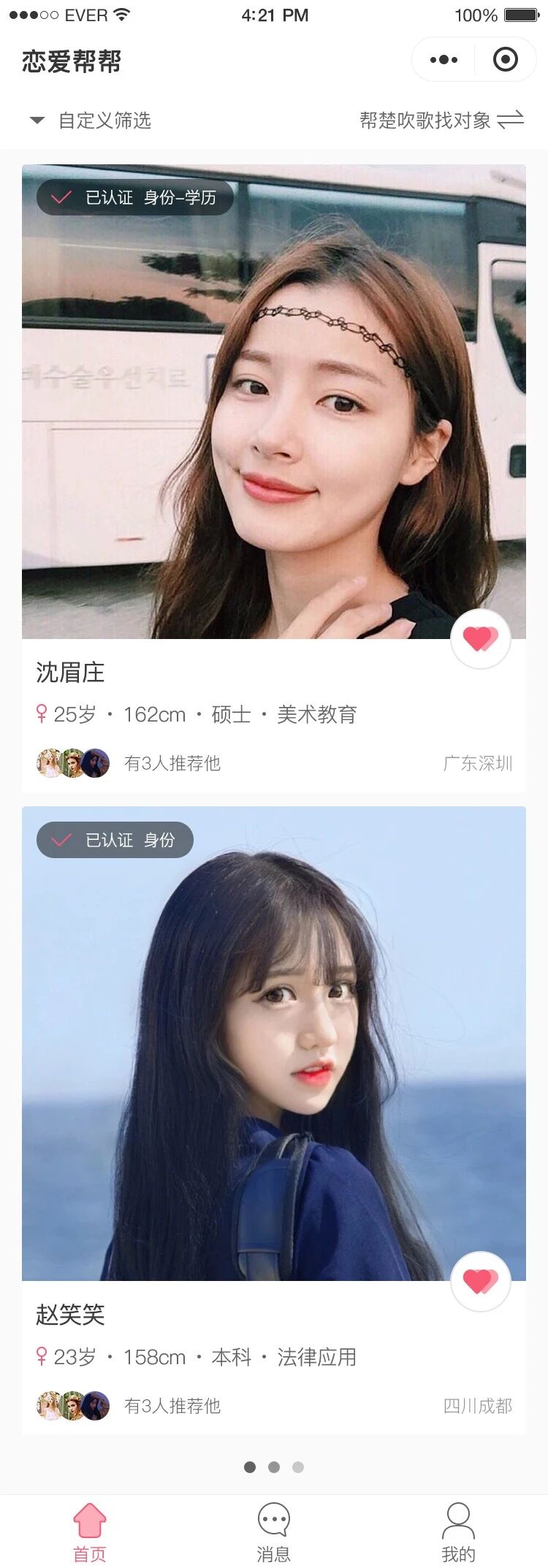 1、在恋爱帮帮首页展示您所在城市的单身异性,您可以筛选年龄、所在城市、学历进行查看;