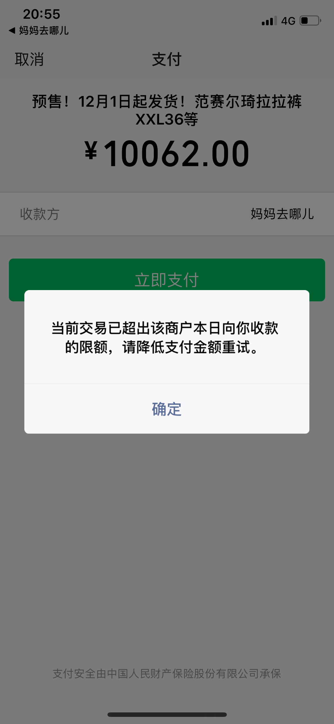 为什么用户支付会出现这个提示,商户号还有这种限额吗,怎么调整限额,而且用户调低额度成几千也不行啊