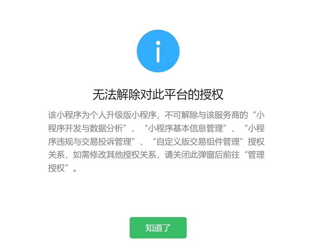 另外,个人小程序主体变更为企业认证后,微信公众平台无法操作小程序解绑。