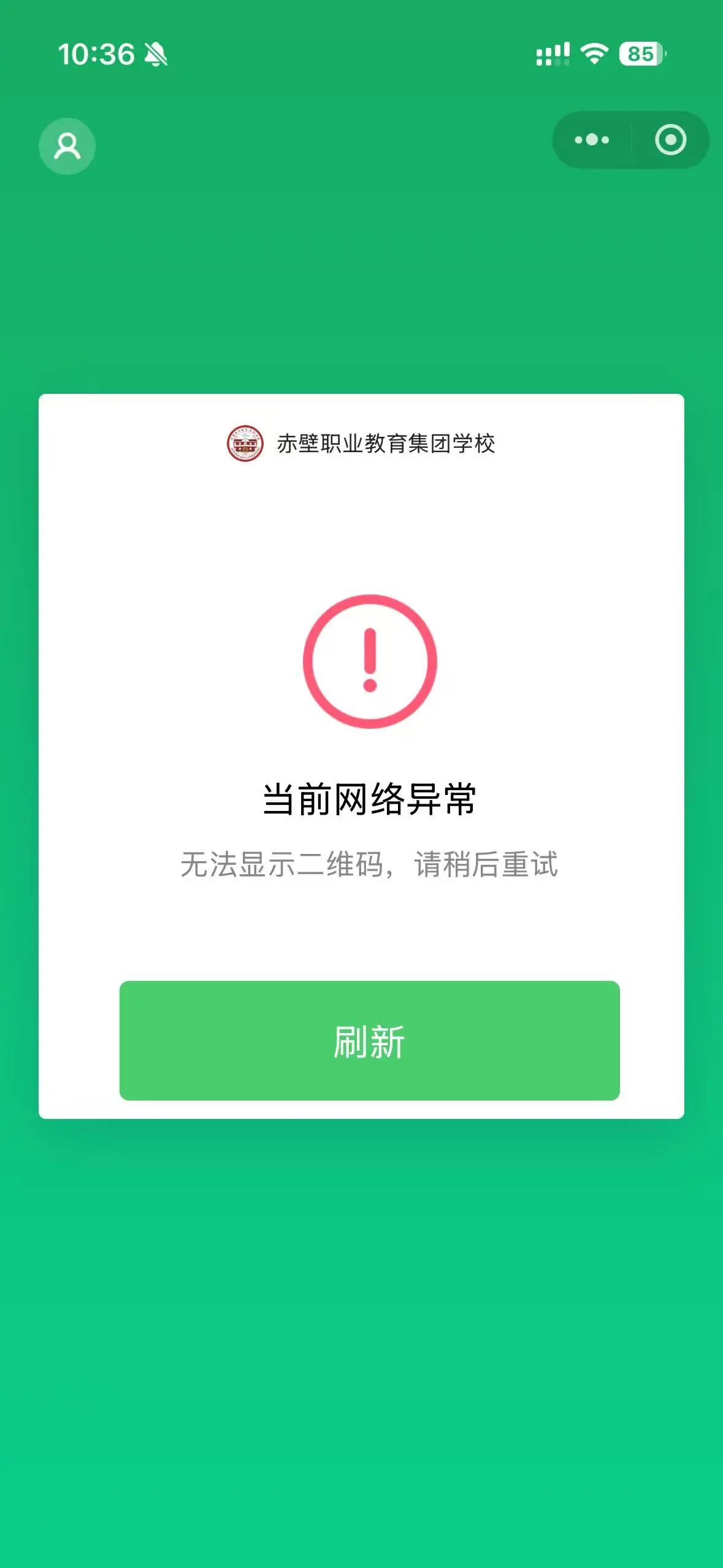 像当前网络异常,无法显示二维码。这种是小程序后台错误还是什么问题