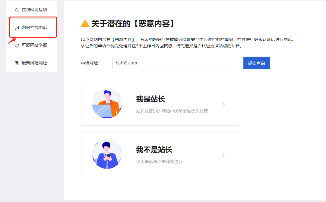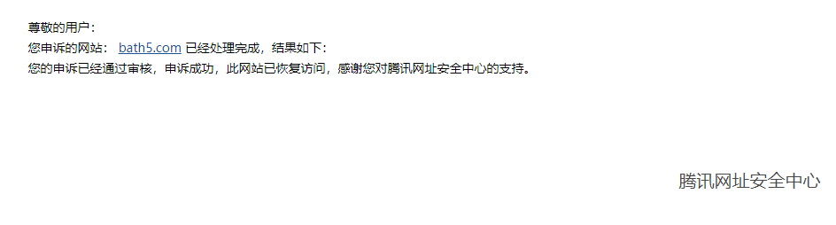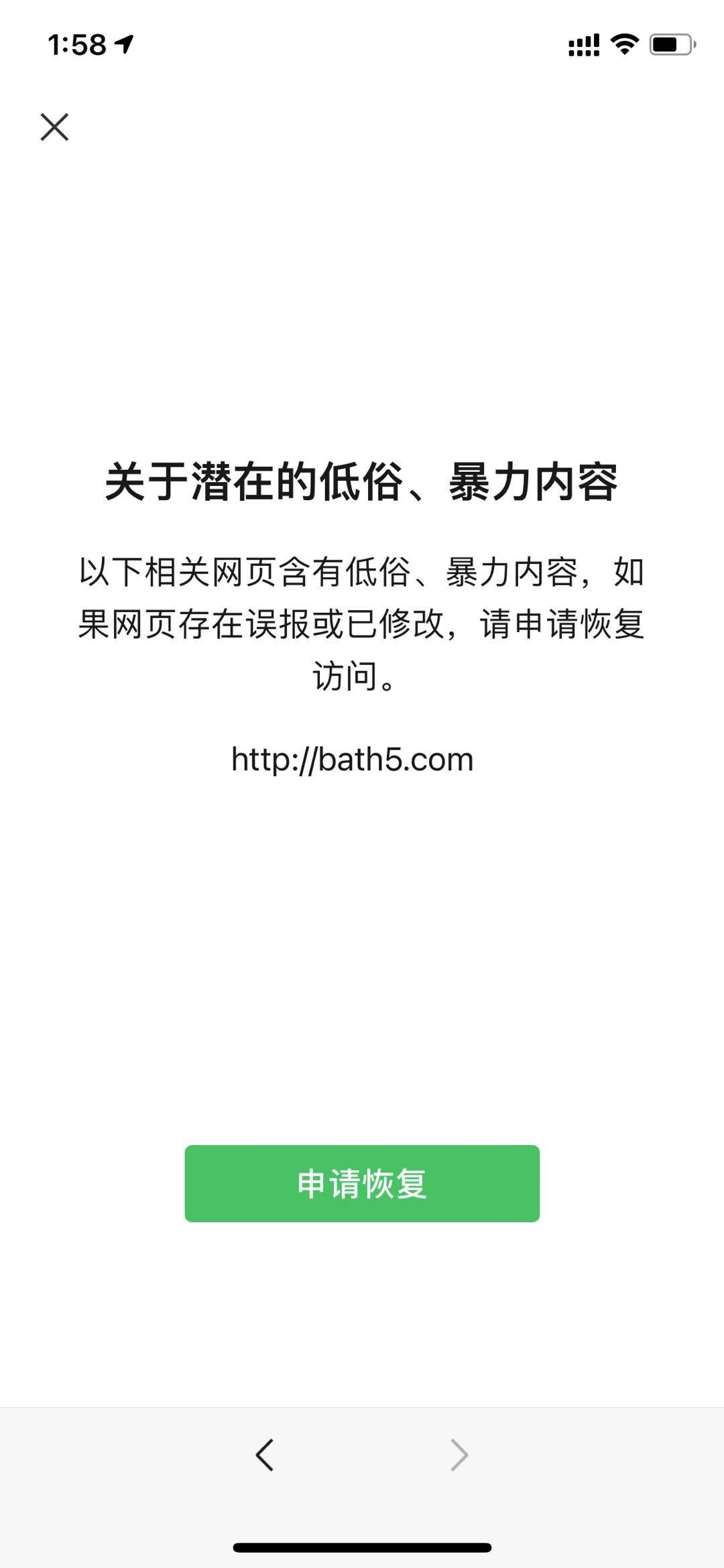 你好,经核实域名bath5.com被手机管家拦截,此处仅处理被微信暂停提供微信内直接访问的服务的外部链接的申诉问题,此服务不在受理范围,请登录手机管家官网【http://gj.qq.com/online_server/complain_url.html】自行申诉,知悉。