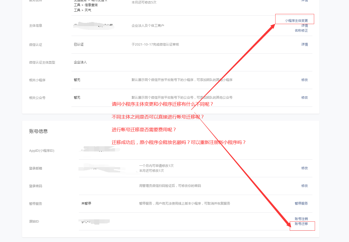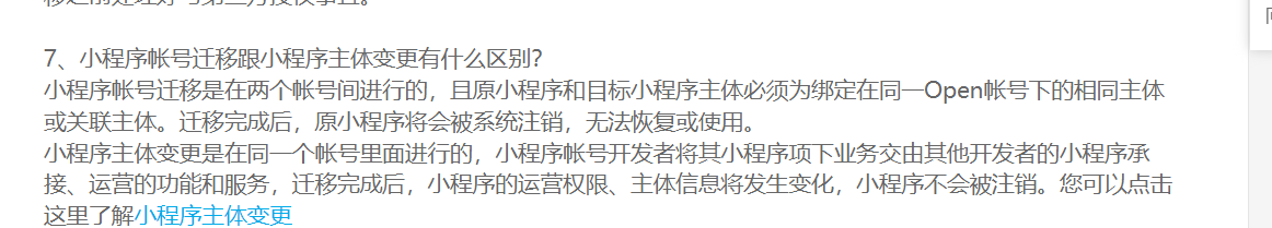 请问一下小程序主体变更和小程序迁移有什么不同吗?、