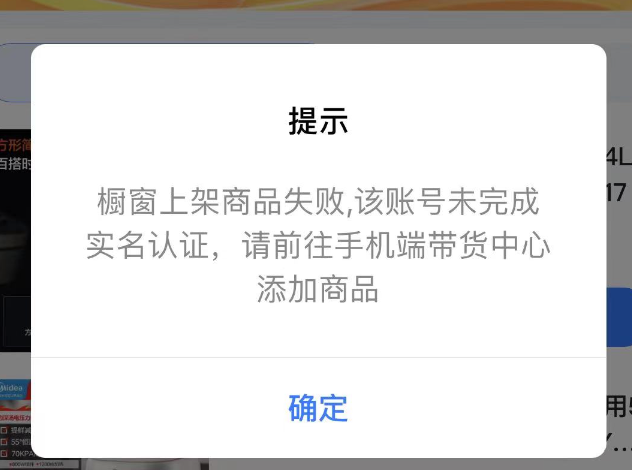 接口报错与实际不符:用户已完成实名认证,但是调用添加团长商品到橱窗时,返回错误:该账号未完成实名认证